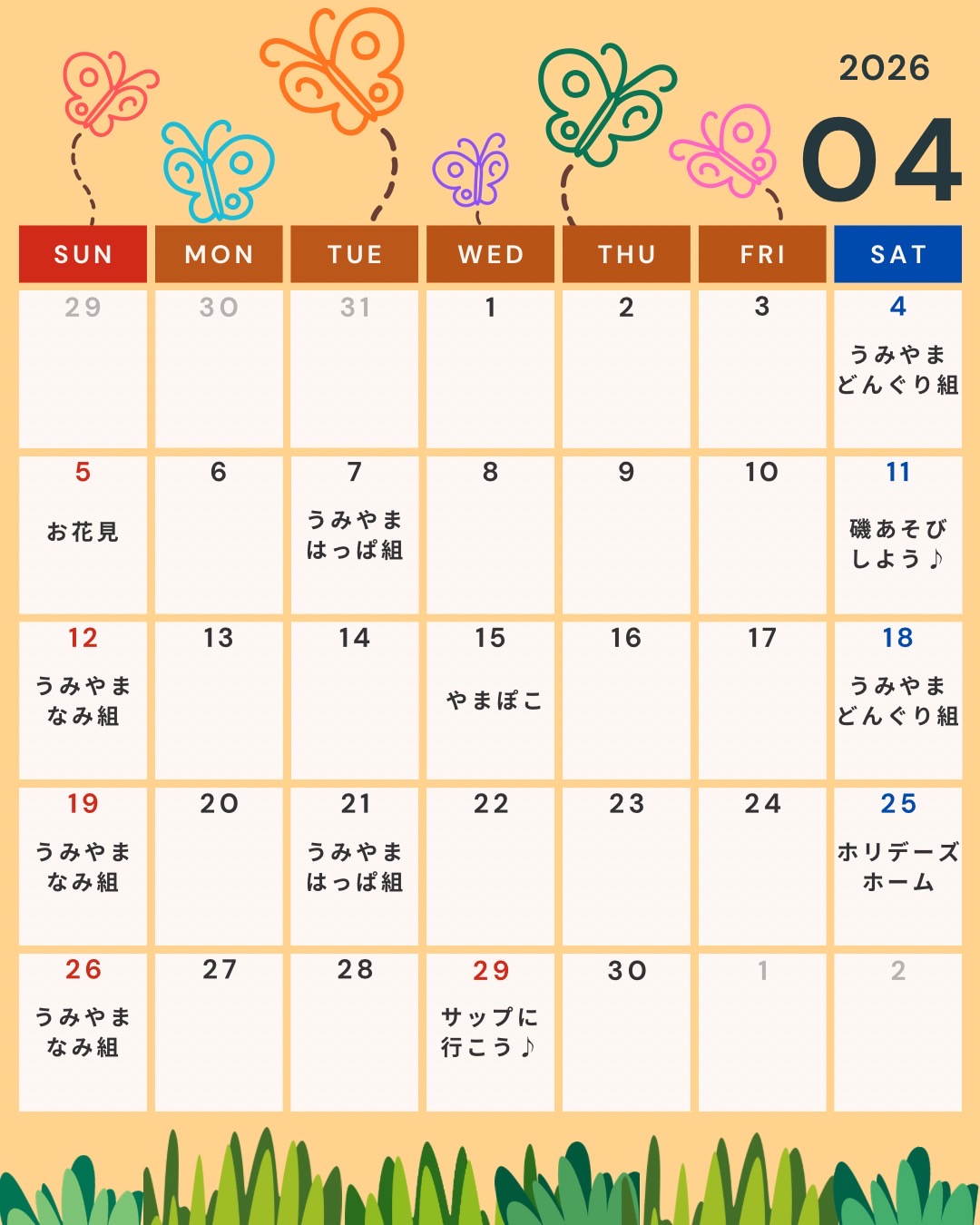 4月スケジュール~うみやま・ホリデーズホーム・イベント~